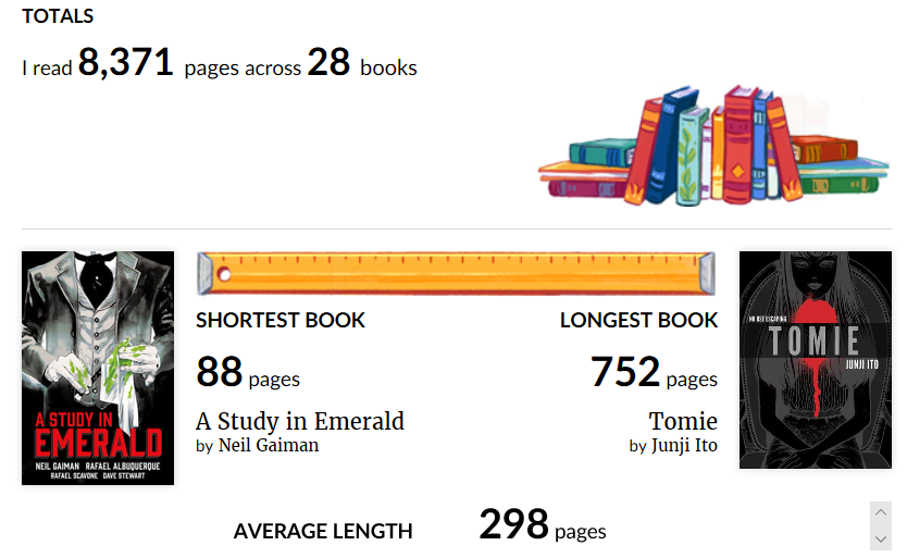 As evident below, 2018 is the year with most number of completed reads of all time which is due to large numbers of graphic novels and comics.