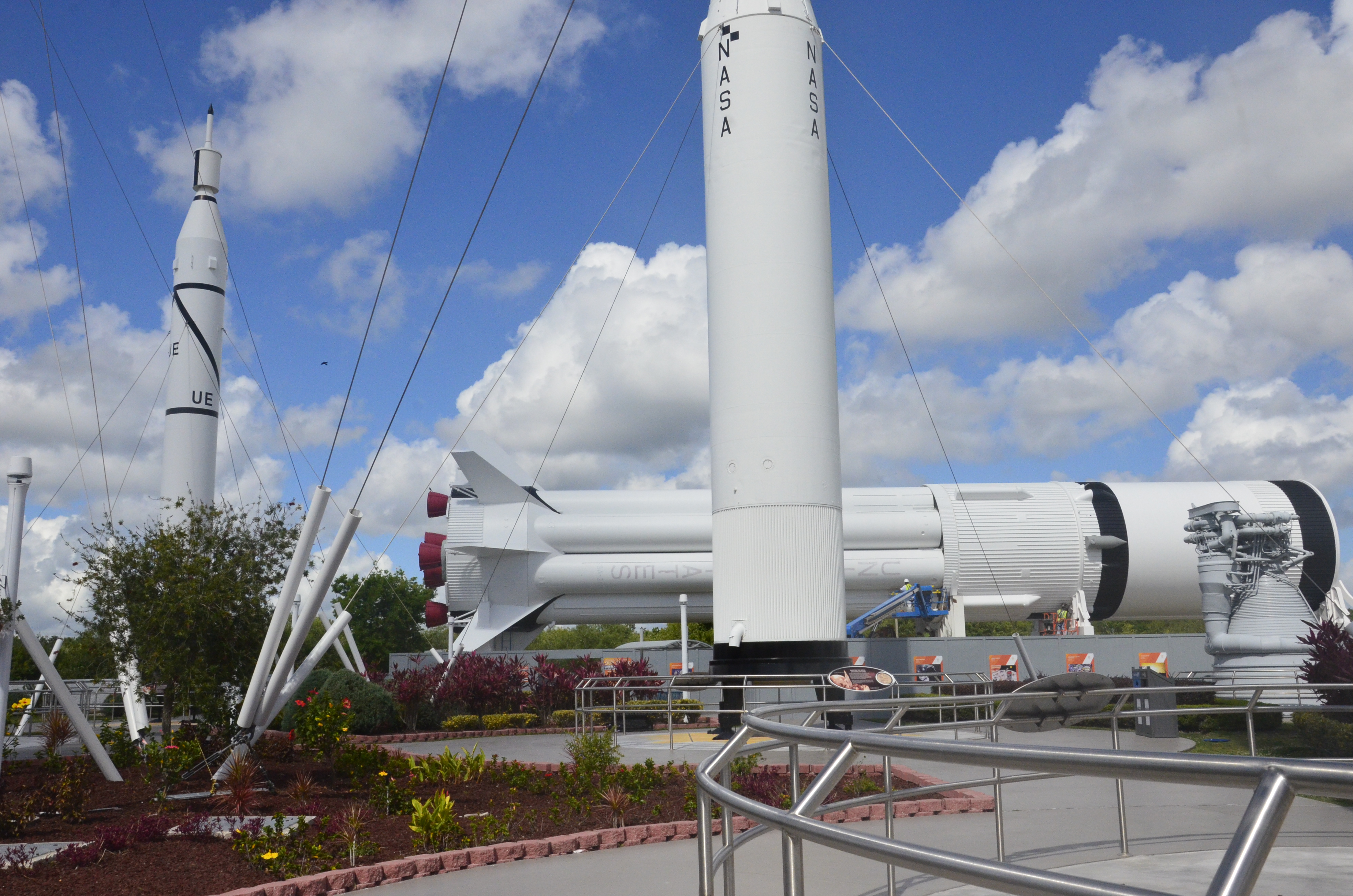 Kennedy space center is evidently something out of some Hollywood set on space opera. Replicas of various launch rockets adorning the horizon, it also adorned various space age symbolism almost conveniently placed for photo lovers.