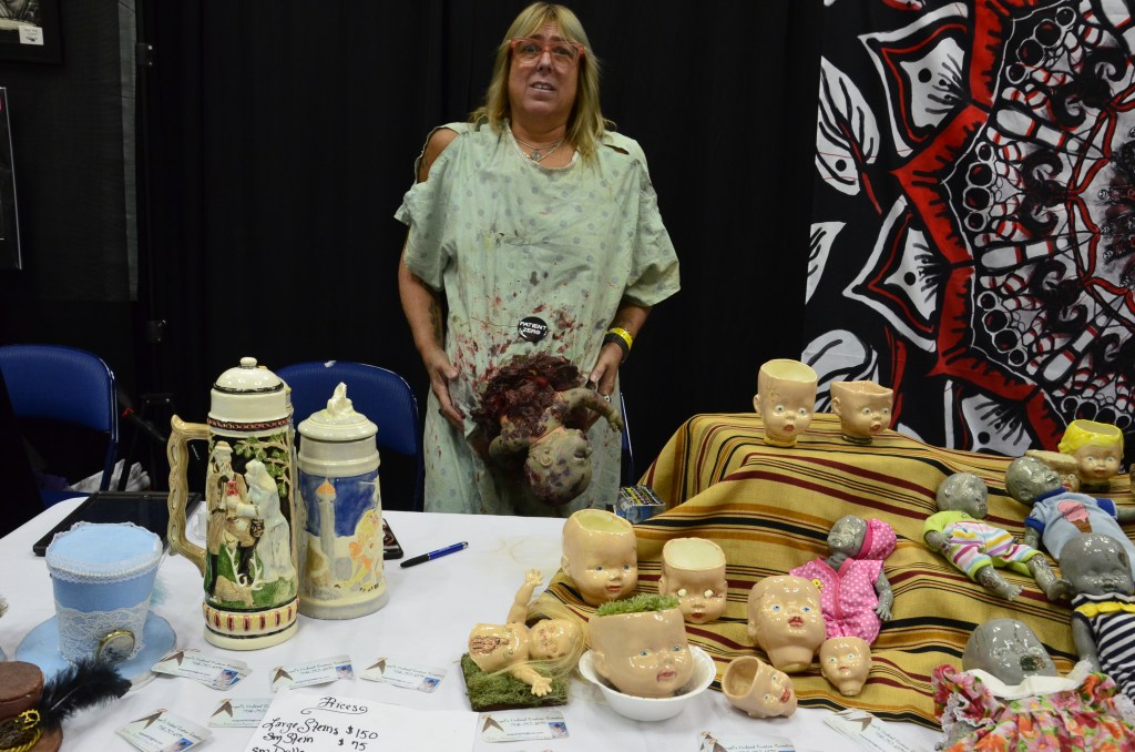 Basically Horror Hound weekend was event much like “comic-con” but everything related to horror. Vendors selling abundant amounts of horror themed masks, t-shirts, books, movies and other merchandise were impressive. Cos-play was usual and bursting with enthusiasm for the penchant of being authentic and realistic. Entire convention hall was giving feeling of some slasher/exploitation/splatter movie set. Decapitated known monsters heads were eyeing everyone keenly along with their unknown, emerged from Lovecraftian mythos abyssal.