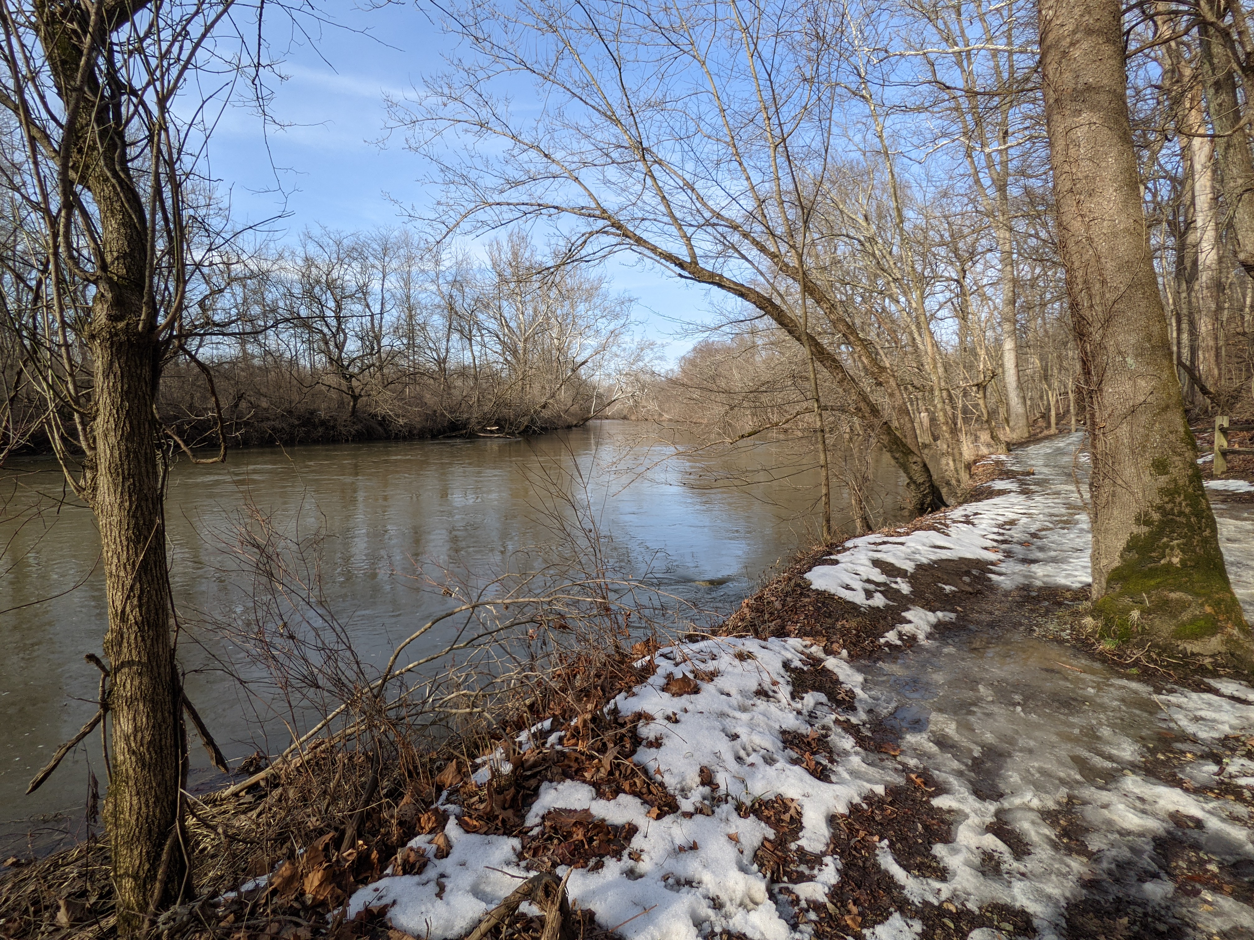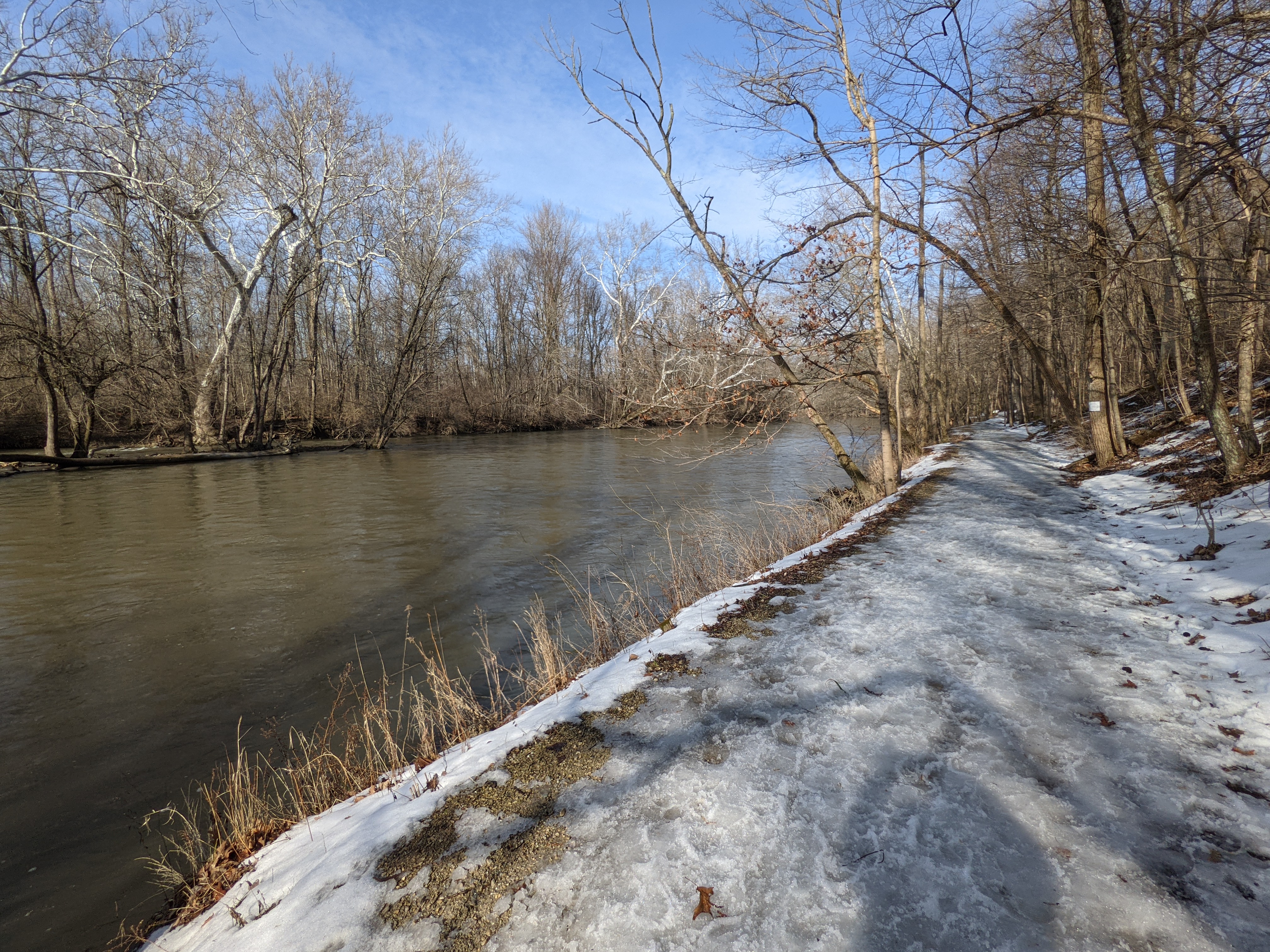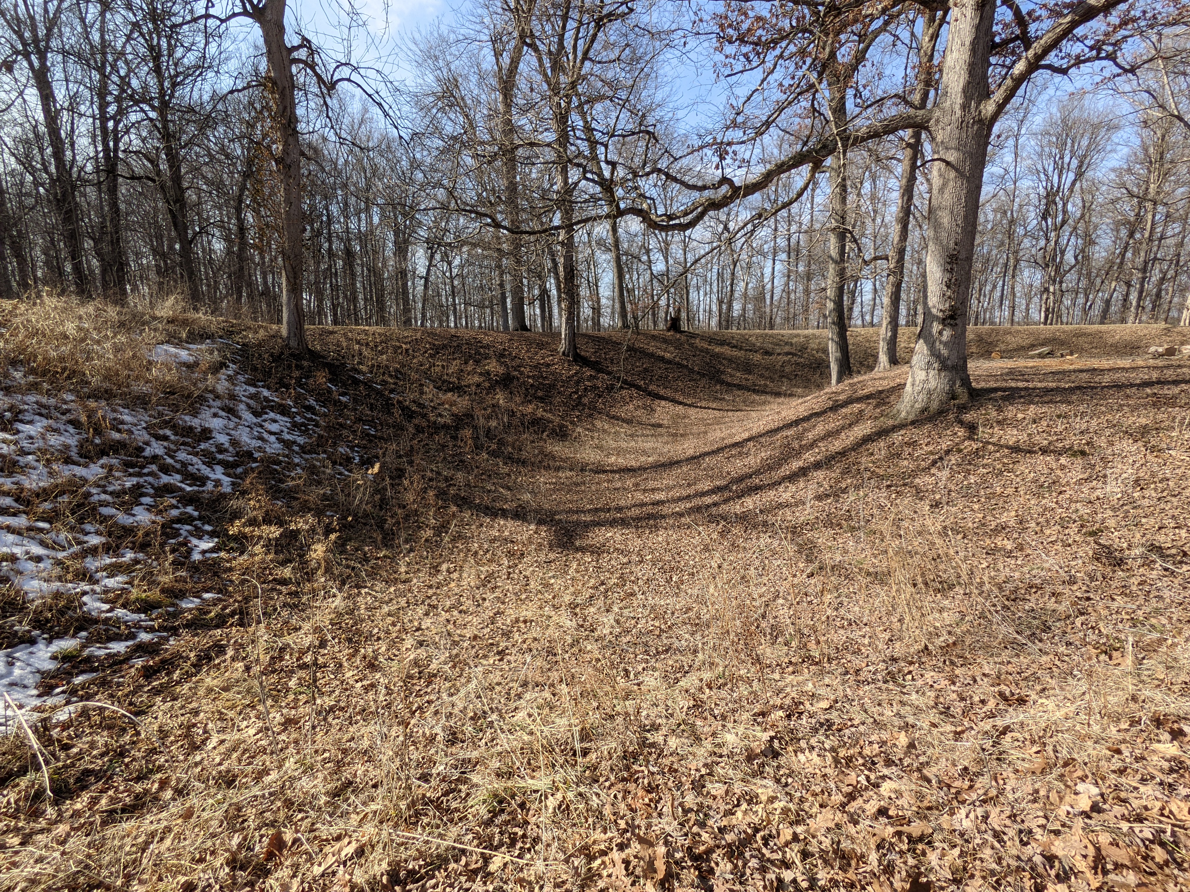 We visited Mounds state park in much colder weather of February 2021. We were welcomed by seasonal thick carpeted grounds with yellows and browns of leaves along with slippery and muddy trails with occasional patches of snow covering. Vistas were more subdued and mud-washed but memorable.