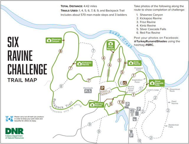 Shades states park is situated nearby another vast and beautiful sister park, Turkey Run. Though Shades states park seems less obvious choice and mostly devoid of visitors as compared to Turkey Run states park, it boasts similar amazing vistas and some of the best rugged trails through multiple ravines. Six ravine challenge is devised to weave through most of the ravines and rugged path nearby Sugar creek.