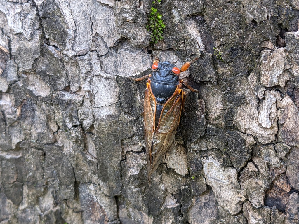 While the above story was taking place, one hot Saturday in June 2021, We decided to “cool off” nearby water bodies easily accessible during one day trip. We went to Cagles Mill Lake, home of popular Cataract Falls. Though famous trail that takes visitors through covered bridge and at the edge of Upper Cataract Falls was closed off due to high rainfall previous few days, trip has redeemed itself by reveling 17 year old natural phenomena in its beautiful black and orange glory. Trees in and around the place were teeming with thousands and thousands of Cicadas called brood X. Entire place was rhythmically buzzing with them.