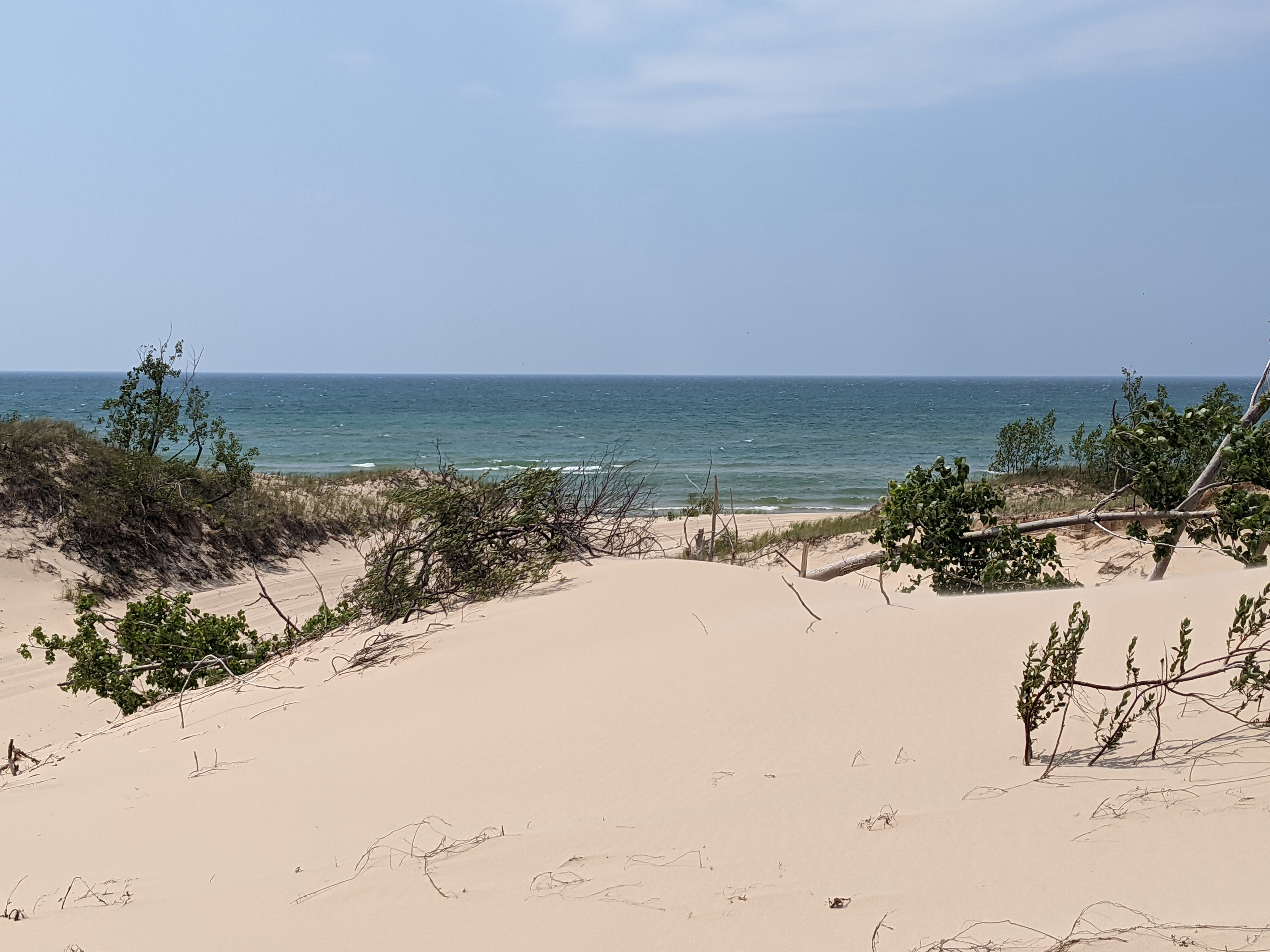 Dune ride was fun and exhilarating. Expanse of sand dotting with green shrubs and trees that is holding the further inland incursion of sand dunes with equally competing expanse of water of lake Michigan could not be justified in photos. Once done, it was advisable to drive one more mile to enjoy the lighthouse nearby. If not actual sea beach, gentle lapping of waves mixed with cawing of seagulls along with expanse of lake Michigan won’t let you think otherwise. Silverlake town itself was full of ATVs and four-wheeled drives flagging their wild driving excursion on the sand dunes.