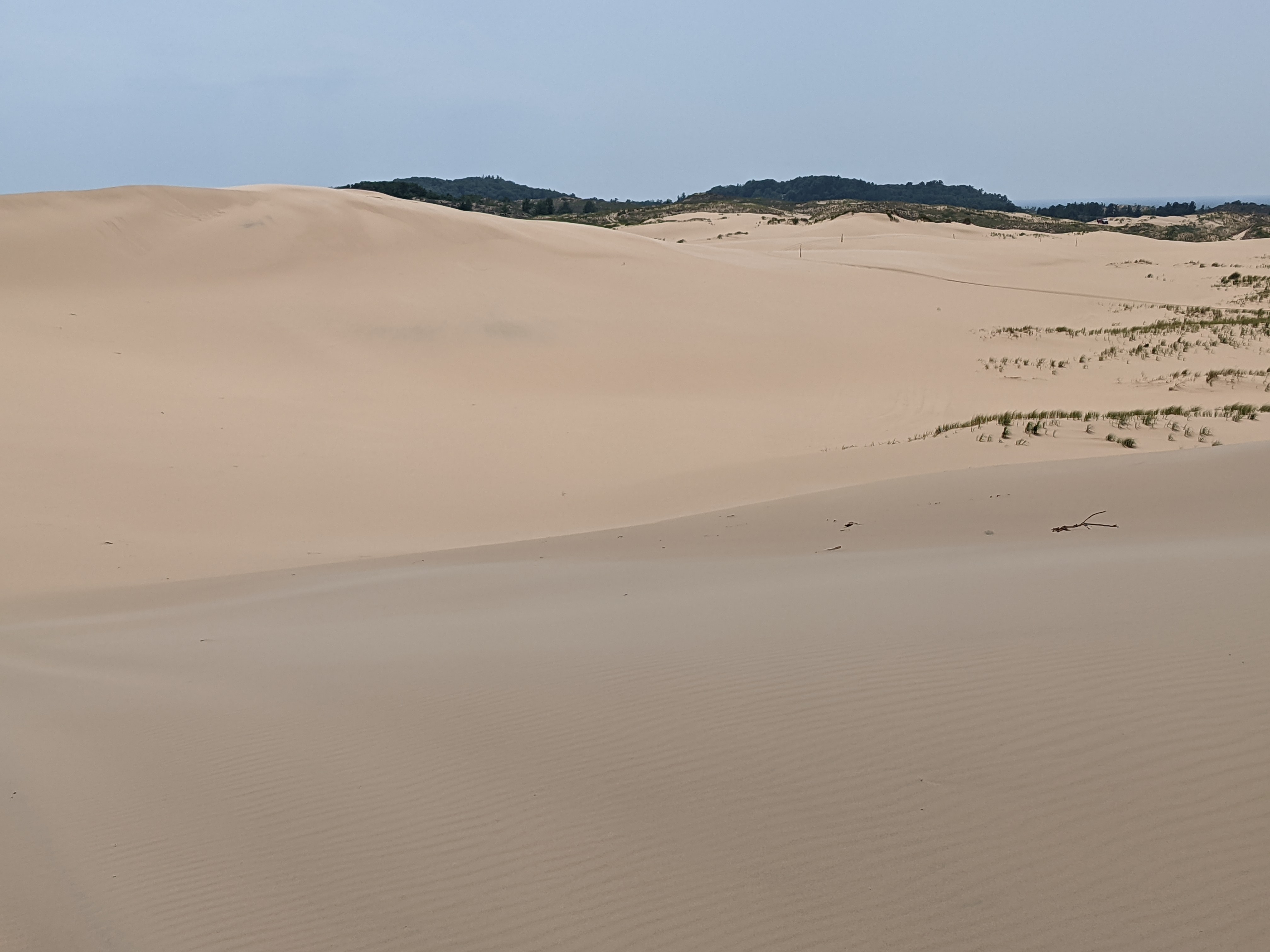 Almost four hours of drive culminating in opening vista of sand and water with only road to reach there covered with green canopies of trees on both side had elicited us like child getting its first taste of chocolate. We were heading for Mac wood’s dune ride. It was chock full with visitors and waiting time was around 45 minutes. By the time we have our name announced for ride, famous “turtle rock” sundae of nearby eatery with its lip smacking combination of freezing vanilla ice cream on top of hot chocolate fudge brownie and caramel, topped with liberal crumbs of pecans had us satiated like anything.