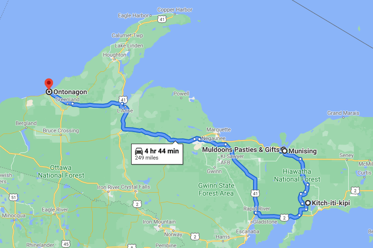 Kitchi-iti-kipi was last stop for us to visit before we traveled further west towards our overnight stop at Ontonagon, MI. Driving to Ontonagon, MI was treat in itself. Drive was punctuated with dense forests of Ottawa national forest and Porcupine mountains wilderness state park where human footprint was minimal and roads were lonely except occasional passing vehicles. Frequently, road opened up into small quaint towns nearby lake shore with all the allure of driving by expanse of blue water with small piers and all. Staying at Ontonagon, MI brought advantage of starting the day early with all surrounding state parks and many waterfalls.