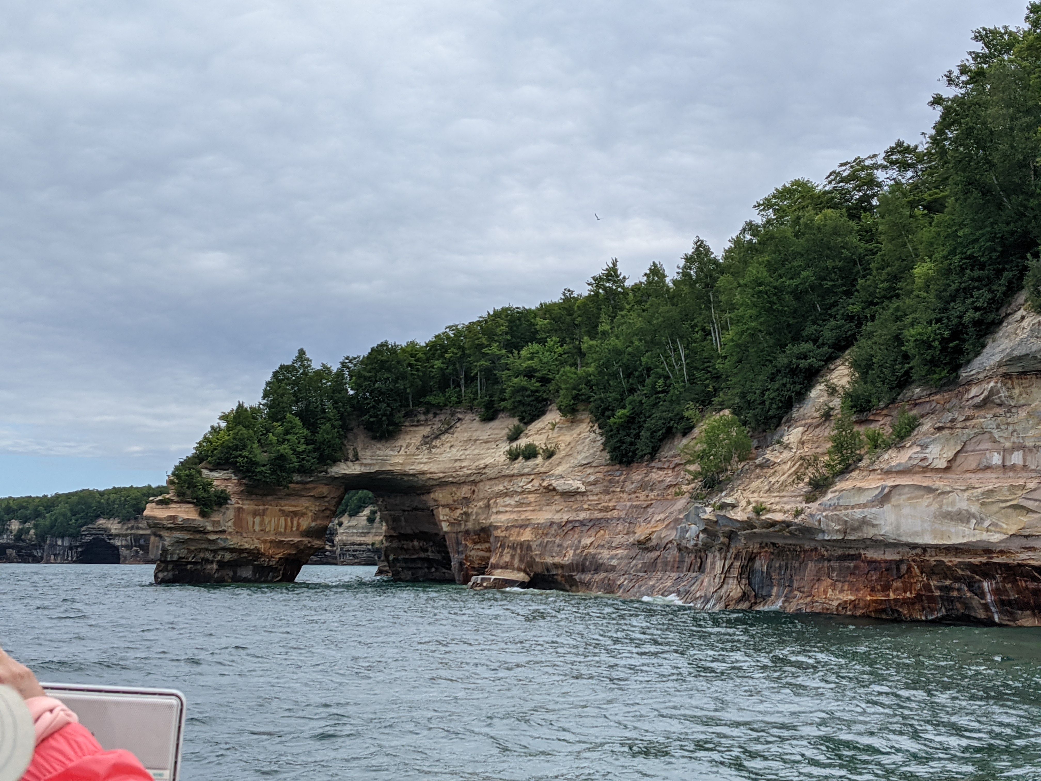 With carefully chosen summer dresses tucked under unprecedented wind cheaters, shawls and hoodies, pictured rock boat tour was still booked to the brim with most of the seat occupied by the time we reached. With cold wind buffeting our faces, we still dared to get the upper deck seats in anticipation of more pristine views of pictured rocks. And it served well.