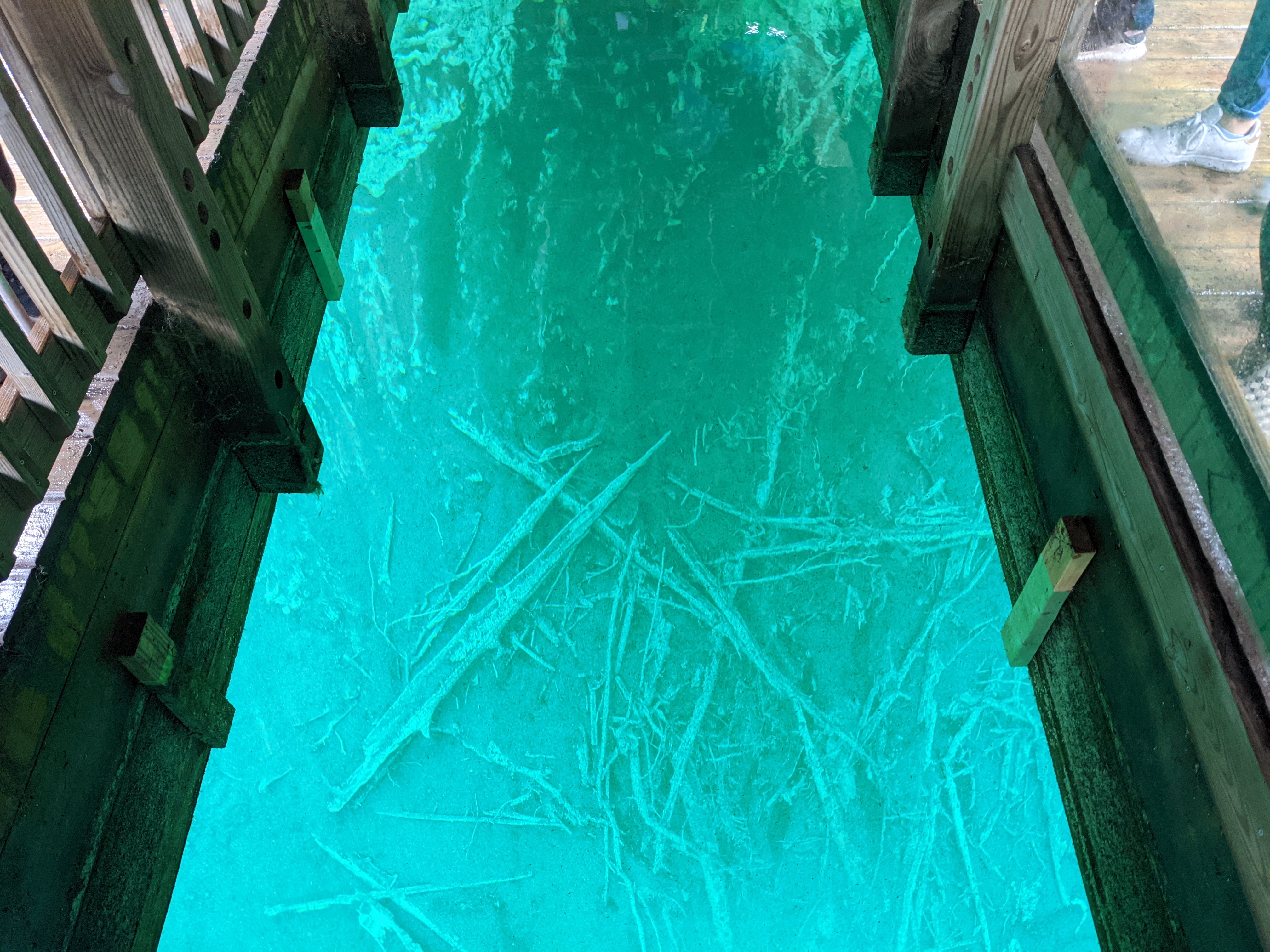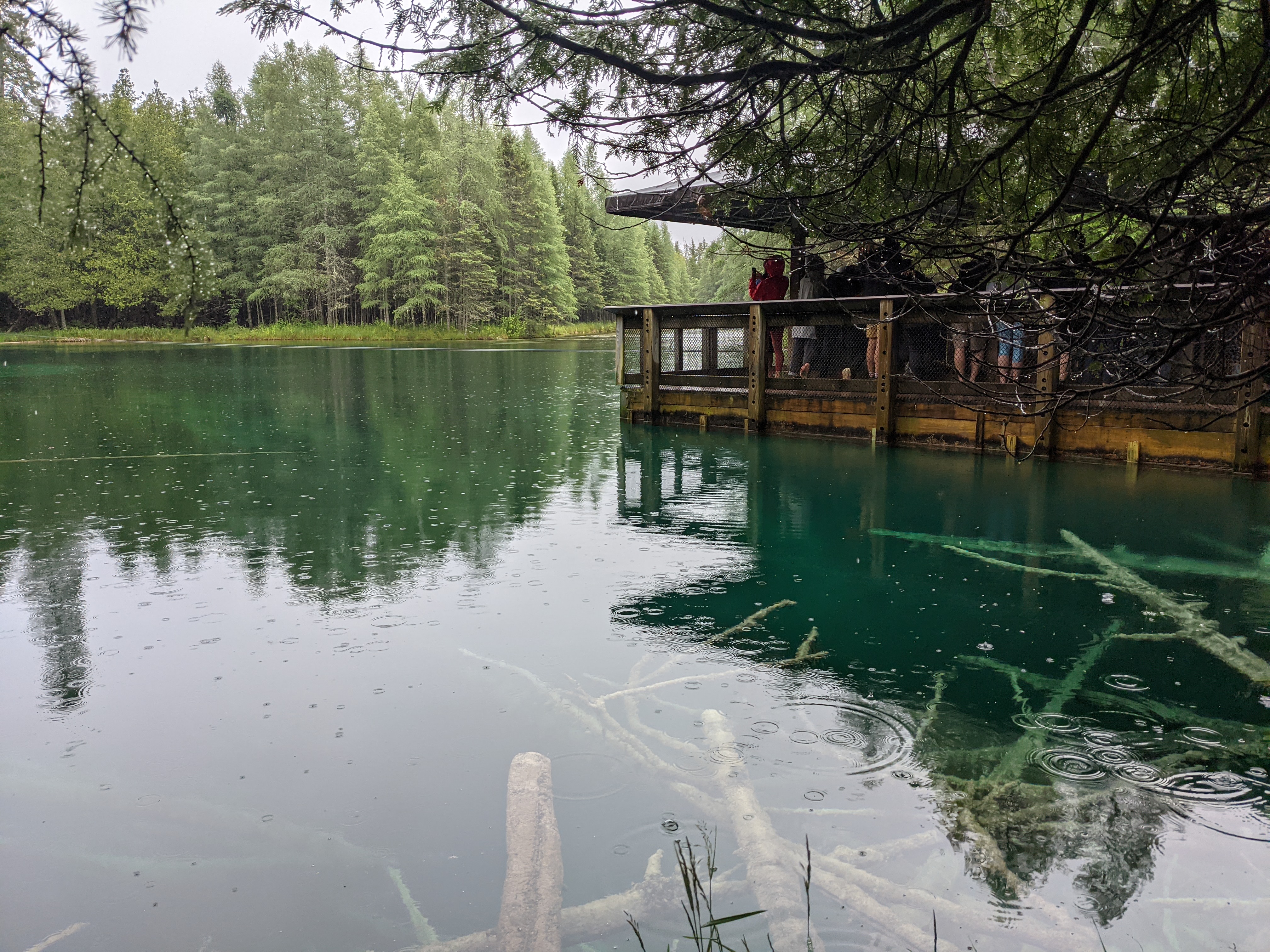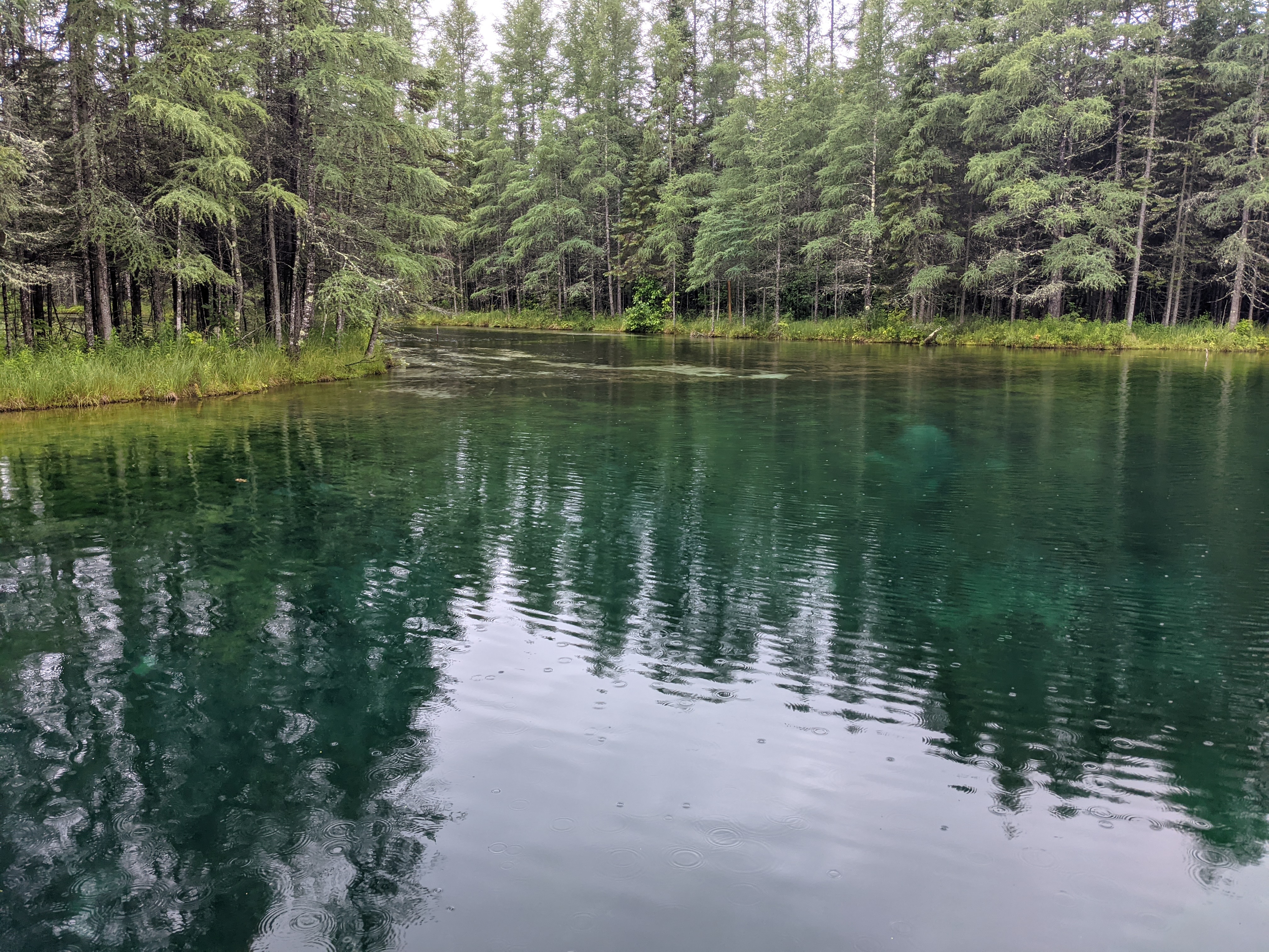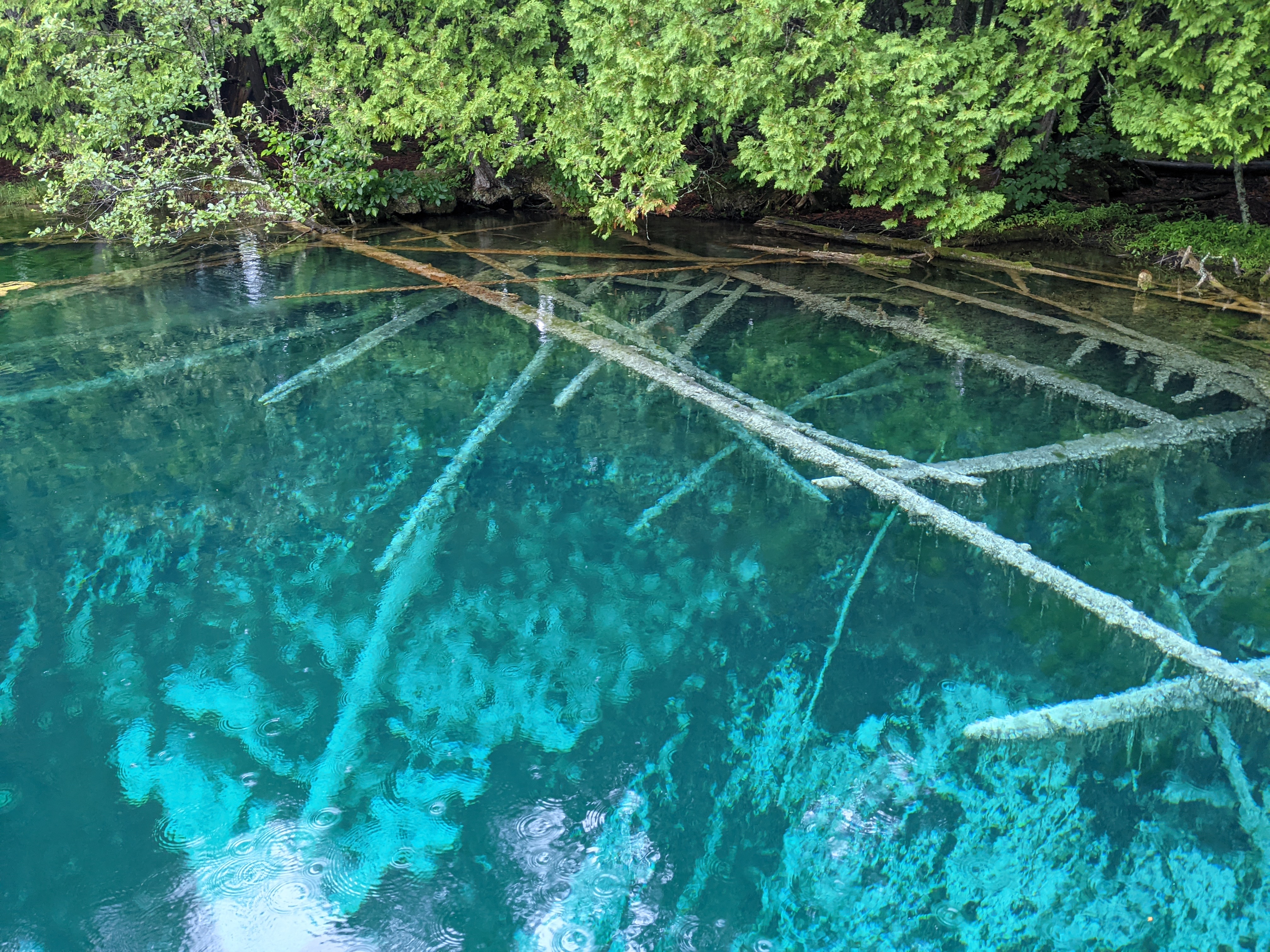 By the time we reached Kitch-iti-kipi, drizzling had picked up and threatened to transform itself into shower. Positively though, it had transformed the green surrounding of the Kitchi-iti-kipi into something surreal. Kitchi-iti-kipi, named after some Indian chieftain lost his life over some foolish quest, is natural spring housing gallons of water cycle through various fissures at its waterbed consisting of limestones. Most enticing part is this “cleaning” process makes the water crystal clear and temperate. A self-operated wooden gondola with open bottom was the way to observe emerald hued clear water and spring’s bottom. As if you were peeking into uniquely different world through some trans-dimensional portal, you could get glimpse of underwater life and water gushing out as muddy jets from fissures in its crystal clear glory. All and all, it was novel and informative experience.