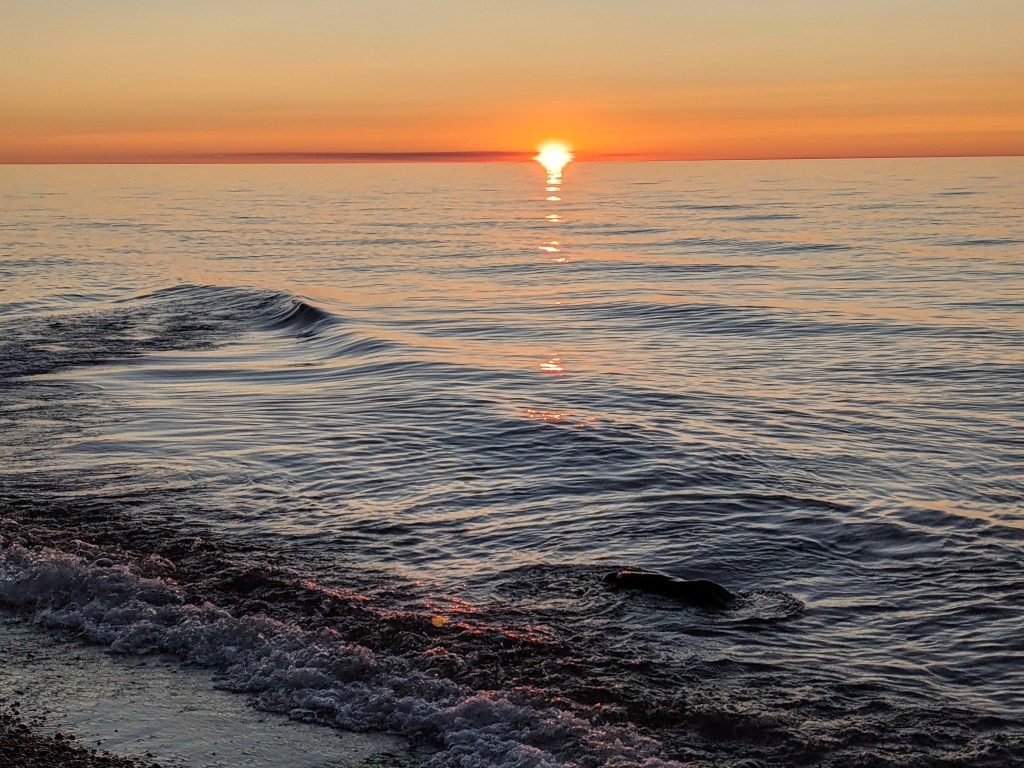 Close to end of the day, witnessing the saffron colored setting sun flavoring the evening sky with slight magenta and pink mutely reflecting over water of Lake Superior, was not only marking the day-end but approaching end of the journey also at small beach nearby our lodge.