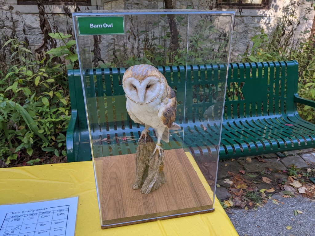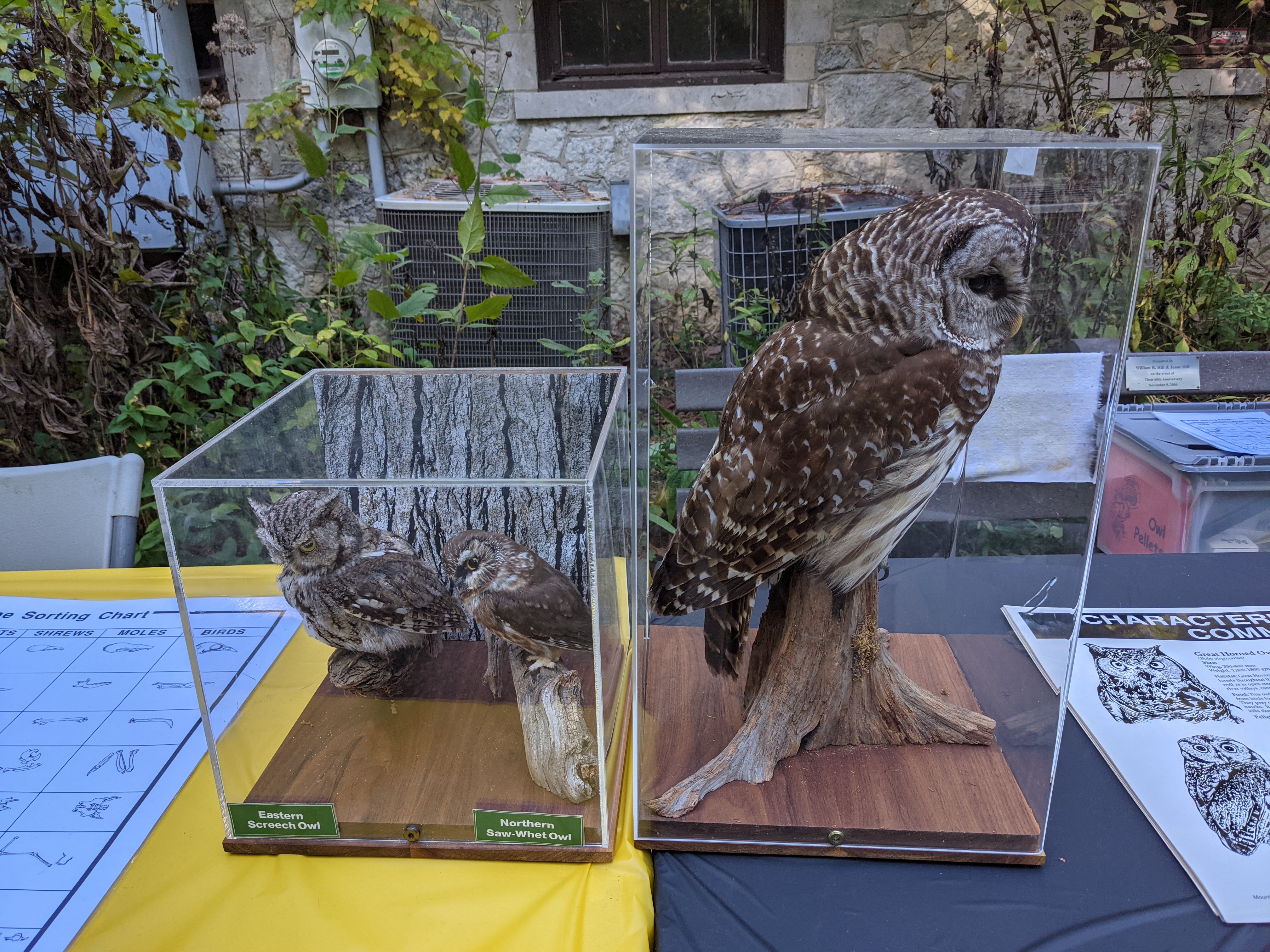 Back to Ornithology center which was the prime center of further Owlfest activities, we were invited to observe feeding of in-housed Turkey vulture then and Horned owl and Barn owl later in the day. We equally savored the feeding time; figuratively for us, literally for birds. We had special tour of the housed Peregrine Falcon and young Bald eagle that were never exposed to public as they were still settling down in new environment. Ornithology center itself was garlanded with various detailed fact cards and posters related to owls, photo-op booth and auction items related to birds. Outside the center, various desks were setup to enlighten visitors about bird migration, shops selling owl-themed t-shirts and paraphernalia, games for kids and various Harry Potter universe props for more photo opportunities. Hot coco and popcorn were up for grab nominally $1 each to help financing the good cause of supporting such endeavors. There was even spot allocated for s’mores.
