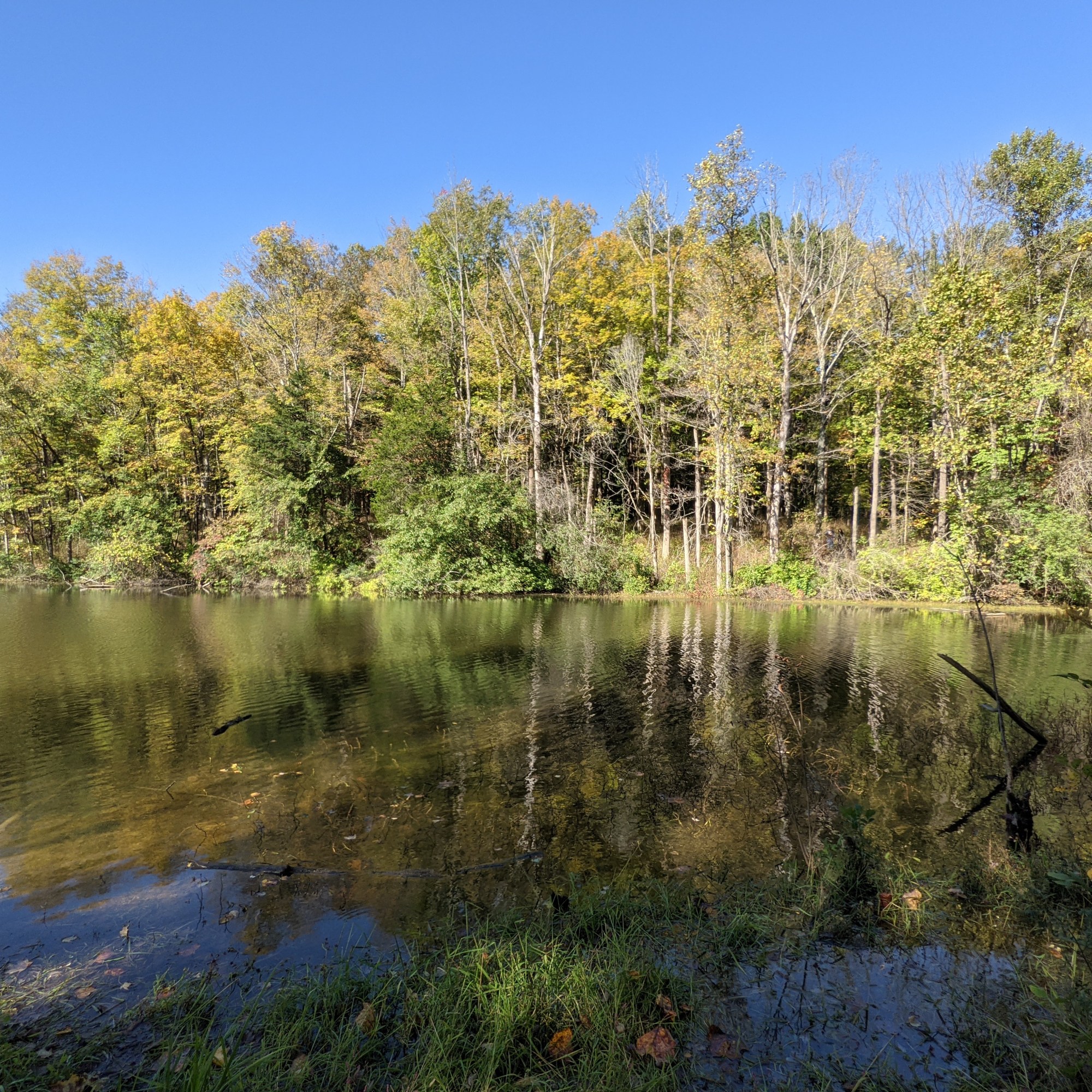 Fest started late cool morning of October Sunday with short hiking trail into wilderness nearby Ornithology center of the park. Unusual to previous on-setting of winter, this year (2021) trees were not yet showing off their true falls colors and adamantly clung to hues of greens . Early morning is the best time to see diurnal birds in action. We were greeted with couple of Pileated woodpeckers hoping one tree branch to other for early “bark-fast”. Not long after that, we observed one large group or few smaller groups of cowbirds, starlings and blackbirds, chittering incessantly while moving from treetop-to-treetop. Once out of the woods, trailing nearby lake, Great blue heron flew past us over the water to settle down on the branch few feet away from us. Though camouflaged under tree shadow, Great heron had given ample opportunity to adjust our binoculars and monoscopes to observe it in full detail. Before concluding the trail, we had distant but glorious views of flying bald eagle, Cooper’s hawk and red-tailed hawk or sharp-shinned hawk competing over common food sources higher up in the sky.
