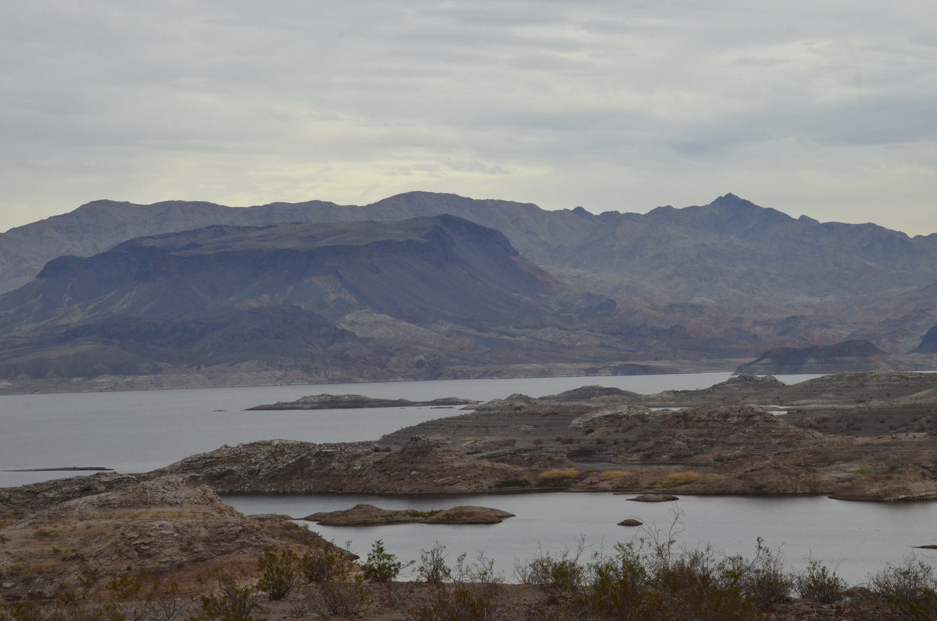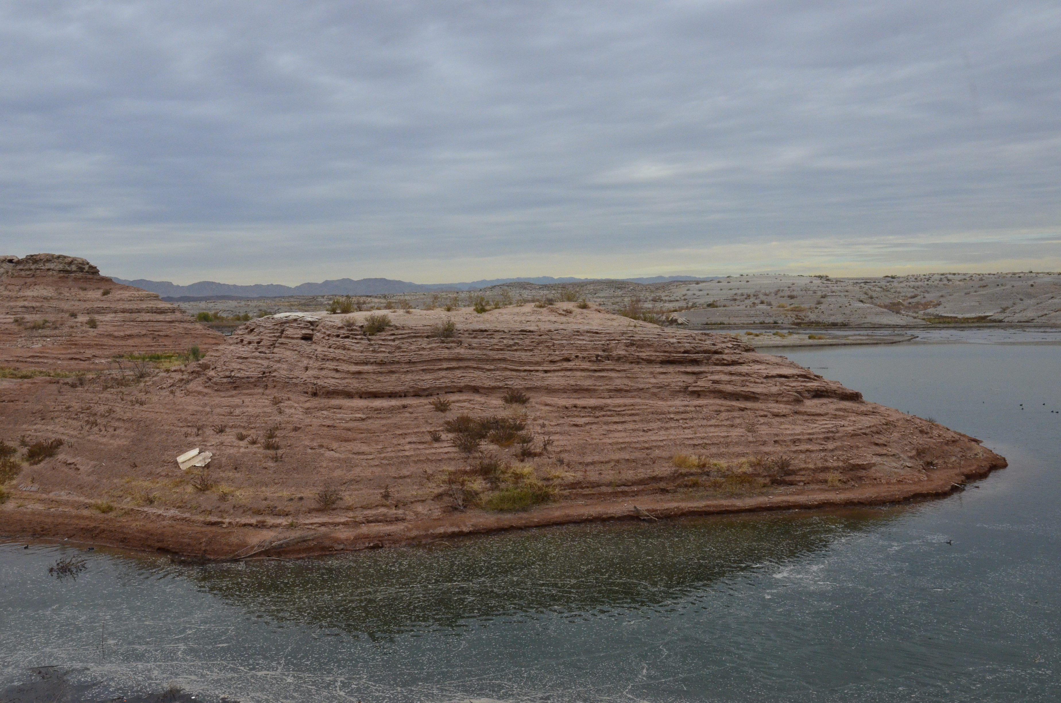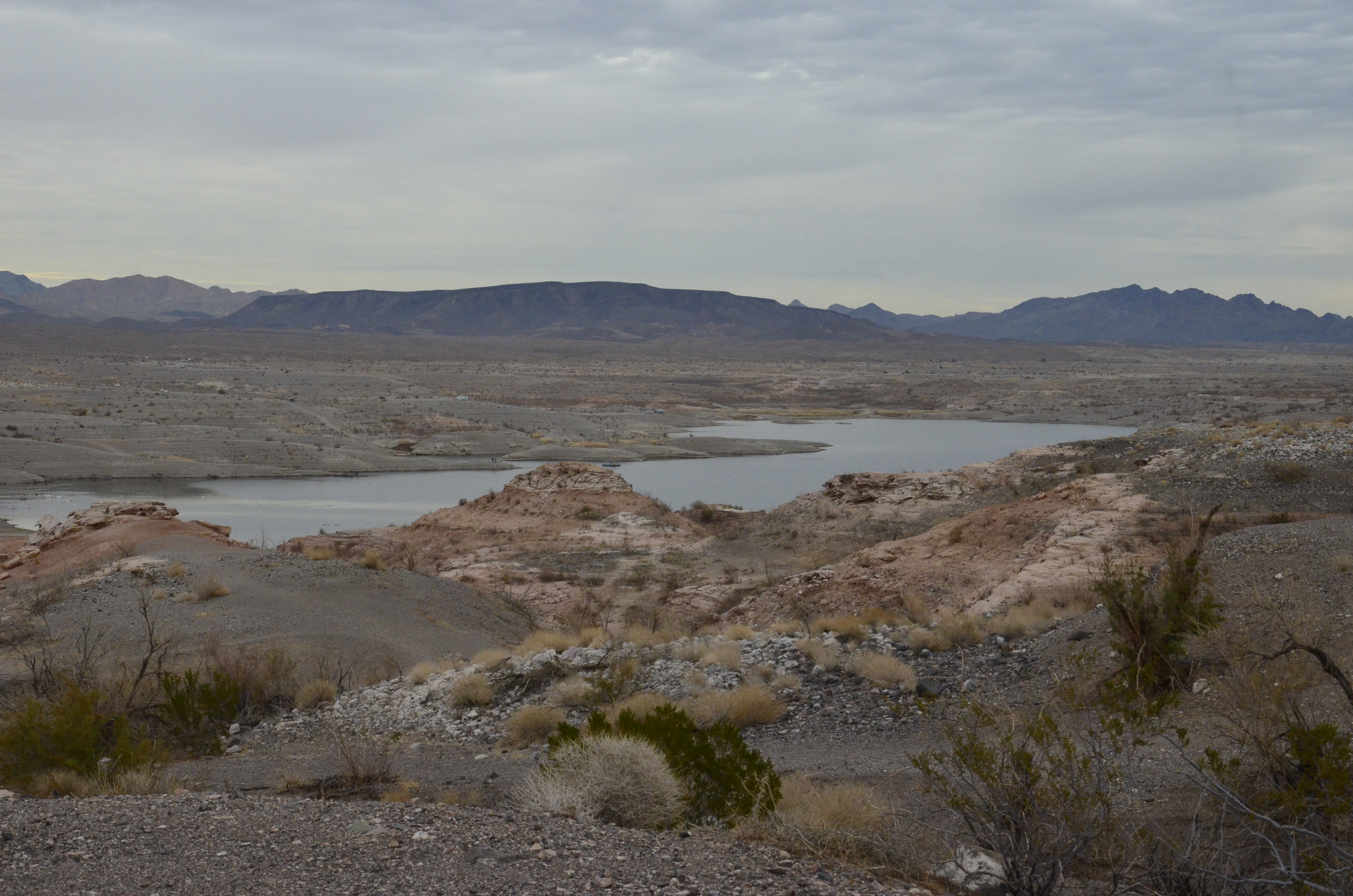 Before leaving the Vegas towards already charted out route to lake Mead national recreation park, we stocked up on water, energy bars and some fruits (mostly apples) as on-the-go supply. Lake Mead is odd 31 miles from Vegas, 40 minutes by road. Temperature was in forties (Fahrenheits) around lake Mead, but cutting wind was sharp enough to take few more degrees away with it. Winter sun was like identical twin to its summer sibling but malnourished and feeble. It was shy enough to hide amongst wandering grey-white “bully” clouds. There was no forecast of rain though. All in all, nice winter weather not to hunkered up inside.
