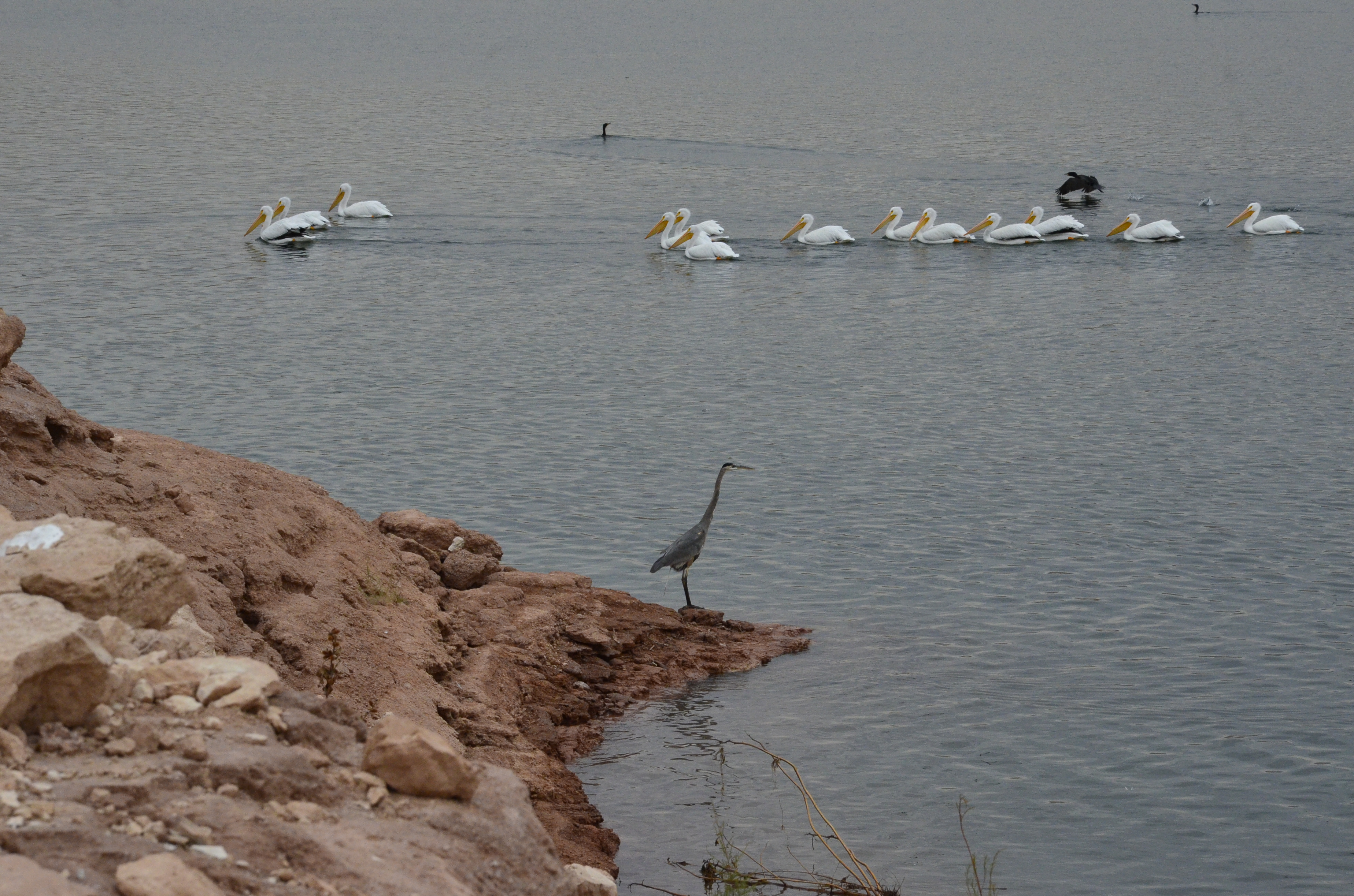 You have not seen the vastness and barrenness of the wild nature if you have not experienced Arizona and Nevada. Not a soul to be seen apart from few winter-loving visitors like us on designated vista points throughout lake mead area. I am too harsh when I said barren. It was just the façade. Once you squint too keenly, you realize that its teeming with intrusion and activity, that white-red-shiny miniscule objects at far distance on the flatbeds are actually campers and RVs, you trot off to beaten path to be greeted by few other same-minded hikers, Small congregation of finch and sparrows fluttering and showing off their beautiful yellow and red throats and beaks, that small brownish floating splotch on simmering blue lake in the distant is small fishing boat. And if you decide, like us, to hike deeper towards edge of the lake via rocky and dusty trail, you will gratefully see the most cacophonous odd mix up of group of pelicans, sea gulls and American coots mingling in the water while many Great Grey herons and Great egrets relaxing at the edge. Refreshingly wild as well as soothingly relaxing.