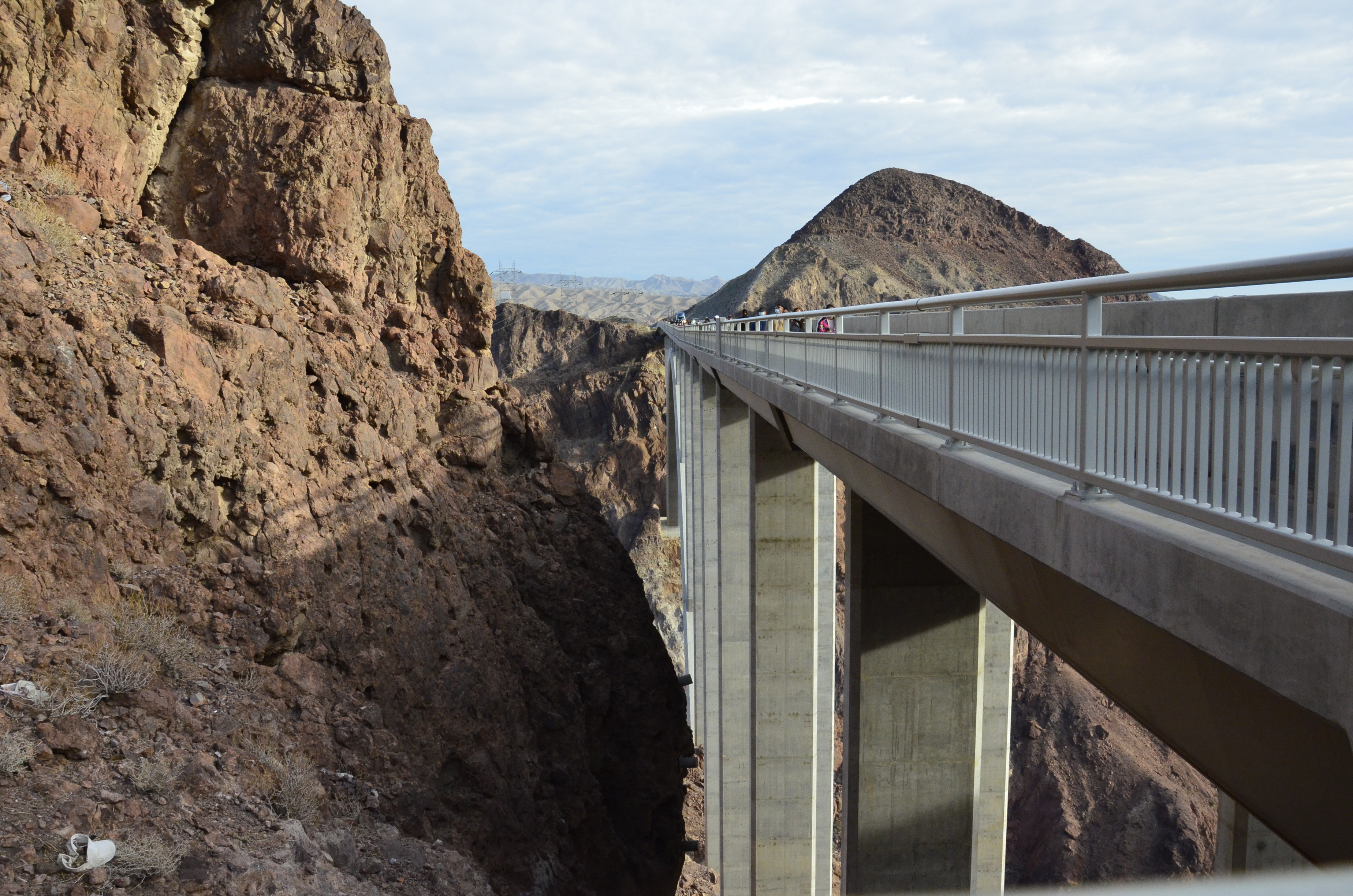 After stopping and prowling many vista points easily accessible via road and a quick visit to visitor center, we exited from Lake Mead recreational area towards another popular visiting spot around Vegas, Hoover Dam. Hoover Dam is mere 15 minutes drive once you exit from Lake Mead visitor center on Boulder city parkway or US-93 BUS. Hoover dam is testimony of USA’s willpower to overcome harsh conditions, naturally as well as economically. This massive architectural edifice was built during great depression. Sight of massive concrete “slab” holding off the megatons of potential energy in the form of water of Colorado river amongst equally competent rock formations on the side has to be seen to be believed. It was so alien and advanced that Hoover dam was featured in lot many movies as great setup for high-end action pieces. Bridge passing in front of the dam with footpath for visitors gives great views of the dam from the front.