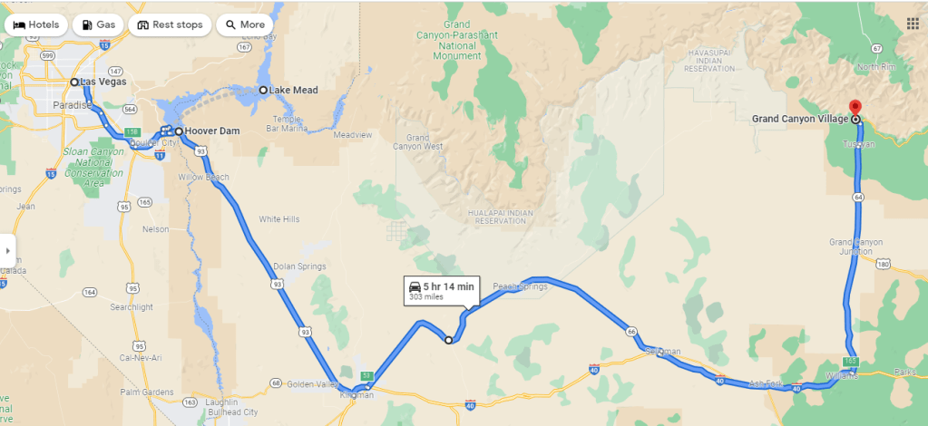 Its unusual to say or write but first night of Vegas was unusual as we didn’t indulge ourselves in any of the Vegas-centric night life. No bets. No casinos. No exotic food or drink. By the morning though, we were craving for some delicious breakfast to kick-off the long day on the road. Zeffer’s café, situated inside the Sahara hotel, provided much needed fulfillment and fill of Vegas. More of a brunch, my unique but deliciously full portion of Kellogg-crusted French toast with merciful drizzling of Nutella, powdered sugar and caramelized banana with peanut butter cream on the side was packed with more than enough calories to last whole day. My wife opted much toned down but equally effective avocado toast. We had planned to reach Grand Canyon village plaza inside Grand Canyon park by late evening so as to cover few spots such as Lake mead and Hoover dam on the way.