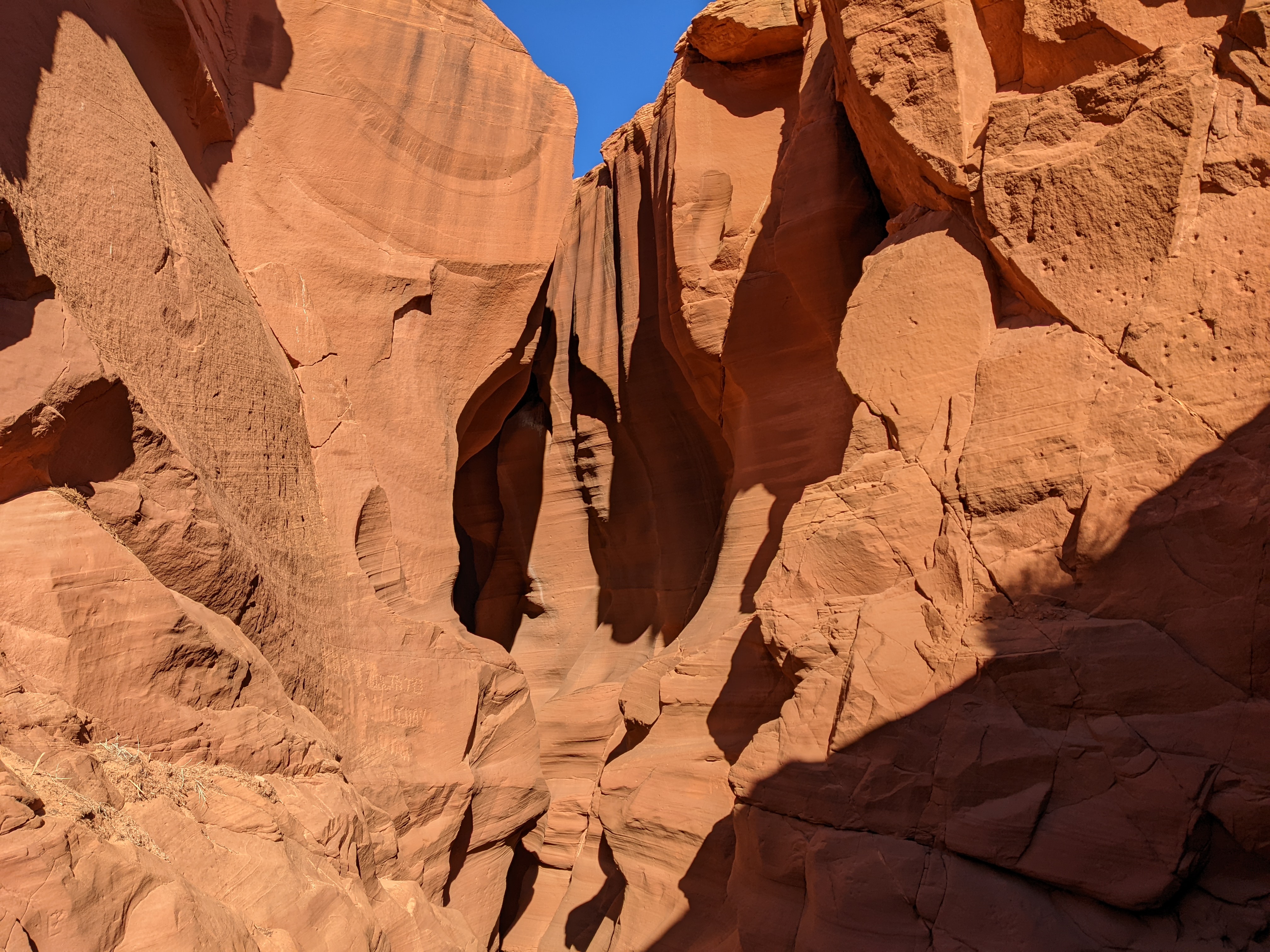 There will be couple of occasions in this travelog series where I might hold back to post many photos I took. Lower antelope canyon is the first of the two. Antelope canyons are dark and needs very careful camera settings (on your cell, DSLR not allowed) and experienced eye to capture play of dark and light in its stark beauty. One of the job duties of accompanying guide is to guide you for all such photographic spots and how to capture them. He might do the task himself. And results were spectacular. Shafts of light beams churned through uneven but smooth geometry of colored rocks in combination with blue sky creates imaginative composition. “Lady in the dress” is one such example. Another composition is called “Eye of the Dragon” where blue sky peeking through circles of smooth carved rocks resembled to giant blue eye complete with irises. At one such location, guide will create the water fall of sand. Another such imagination shows you horrific face of mummy. As these are very specific captured moments and one had to experience antelope canyon first-hand, I’ll refrain from posting more pictures.