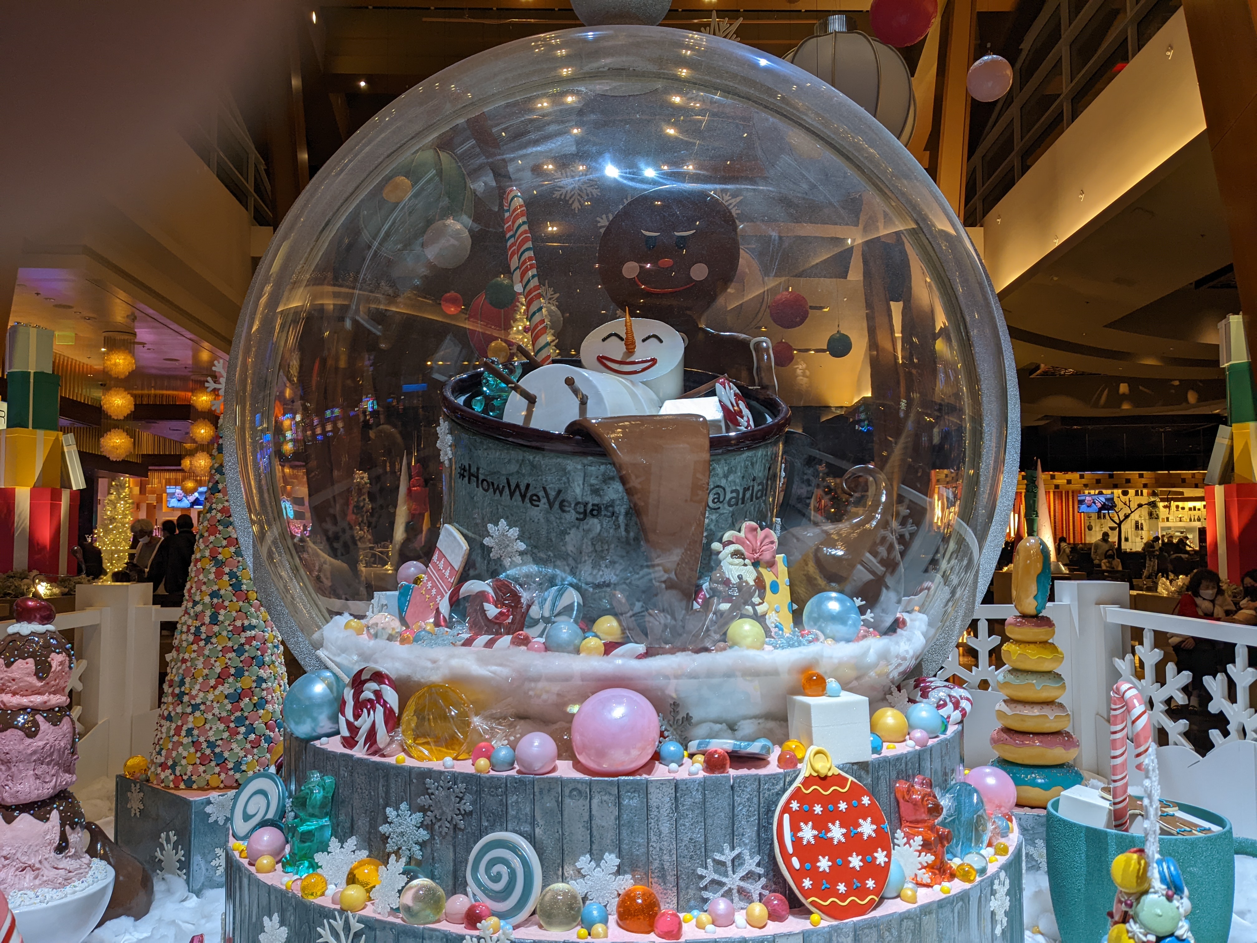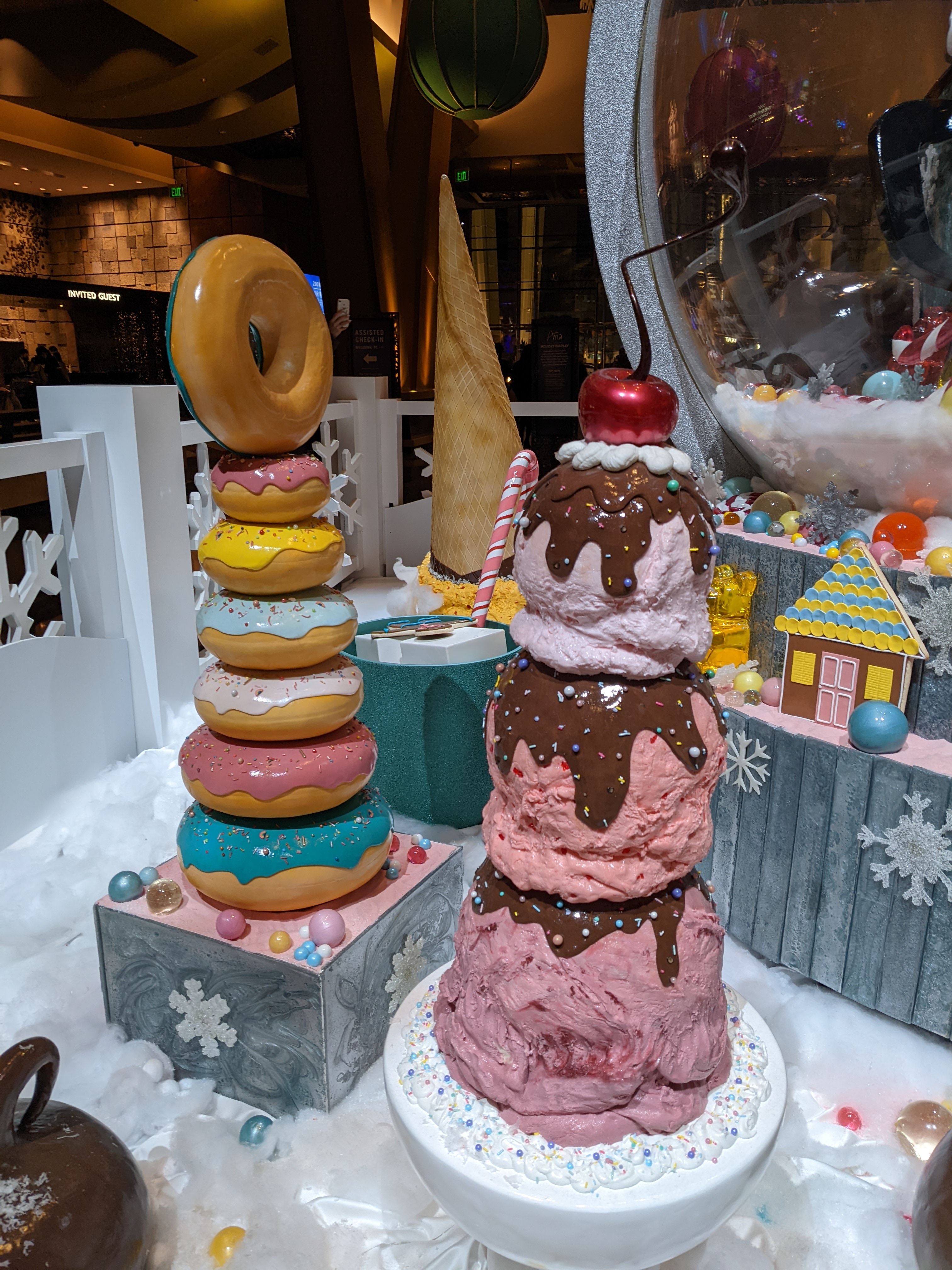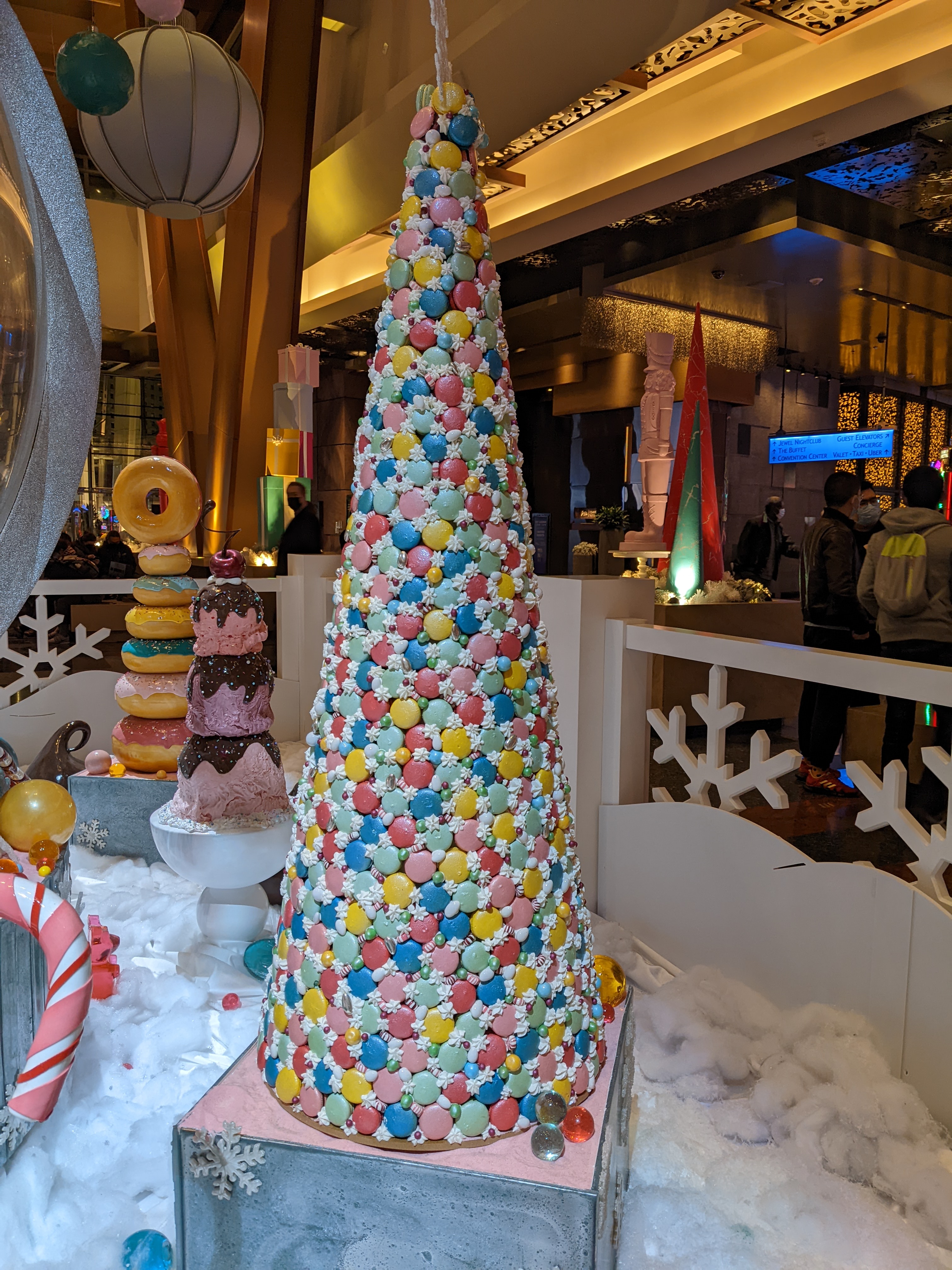 Each year, hotels on Vegas strip adorned decorations to some specific theme. To roam through these decorations had its own charm even if you are not “investing” in casino floors. We were trying to get our way around amidst plethora of other visitors when we realized the sweet confectionary art installed in Bellagio foyer was entirely made of sugar and chocolate. This got our sweet tooth guiding towards Bellagio patisserie where we has large macaroon sandwich. All shades of colorful flower decorations, lighting, elite shops enticing you for window shopping, Christmas-themed music, fountain, colorful drinks, food, “Vegas attired” people, live shows and last but not the least “chinks” of the casinos; all add up to Vegas that can make you feel alive.