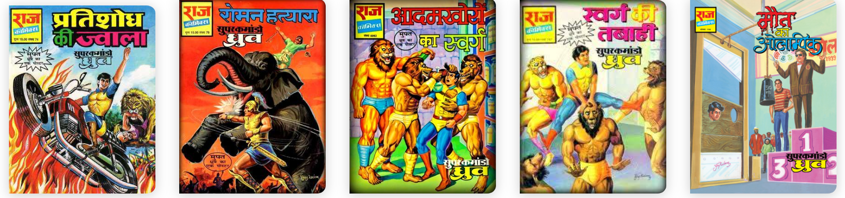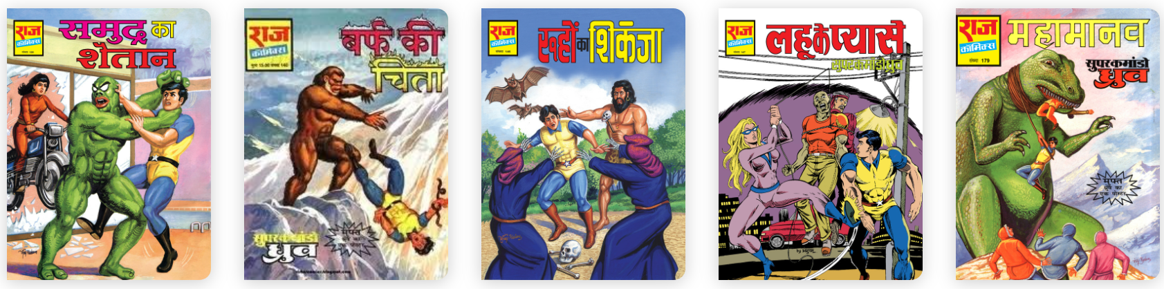 - Raj Comics: If you are not grown up with Nagraj and SCD (Super Commando Dhruv), you should envy my childhood. Though not many new titles are coming out, Raj comics frequently print old issues in new format as collection or digest. For new readers, Nagraj, SCD, Doga, Parmanu, Bhokal, Fighter Toads and other such heroes going to open massive world of pent up reading. For old readers like me, its nostalgia. Apart from fun, you will skill up in Hindi language. Where to buy: Raj comics official website, JH comics, First Cry app/store.